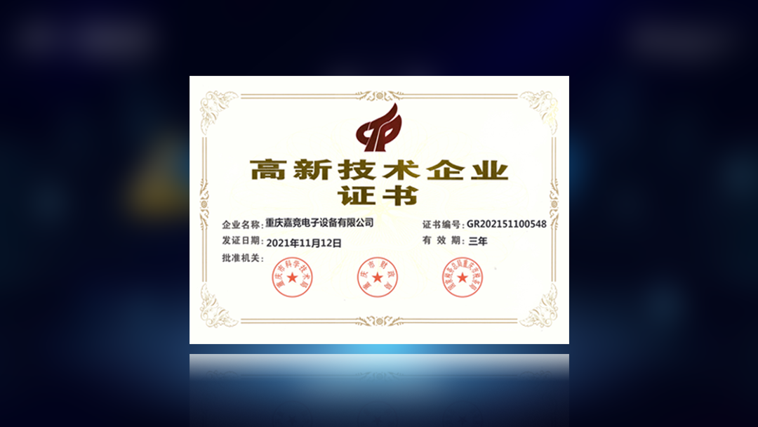 重慶嘉競電子設備有限公司獲高新技術(shù)企業(yè)證書
